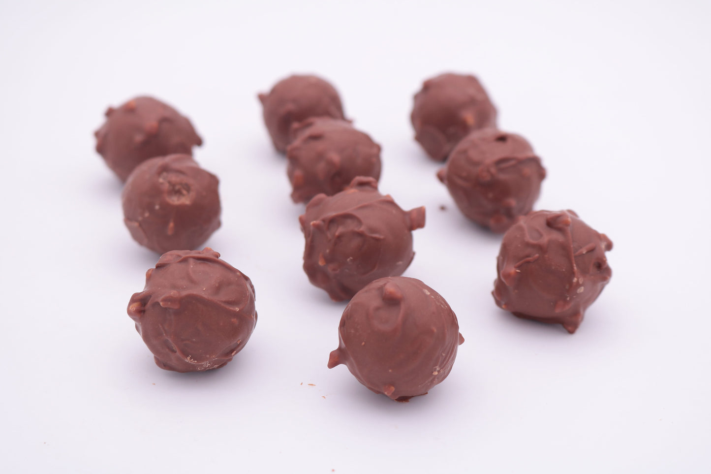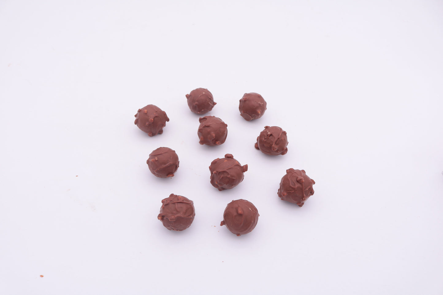 Nos Truffes praliné noisette sans sucre – gourmandise artisanale sont fabriquées dans notre atelier à Bruxelles. Chaque truffe associe un praliné à base de noisettes du Piémont à un enrobage généreux de chocolat au lait édulcoré au xylitol. Les éclats de noisettes torréfiées apportent un croquant subtil à la douceur fondante du praliné, pour un plaisir gourmand immédiat.